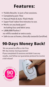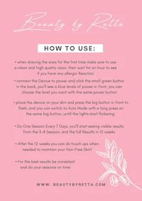 We are confident you are going to absolutely love our BEAUTY BY RETTA Hair Removal Machine for its fantastic performance, we are happy for you to return it for a full refund within 90 days of purchase if you did the sessions for 90 days and haven’t got any Results!